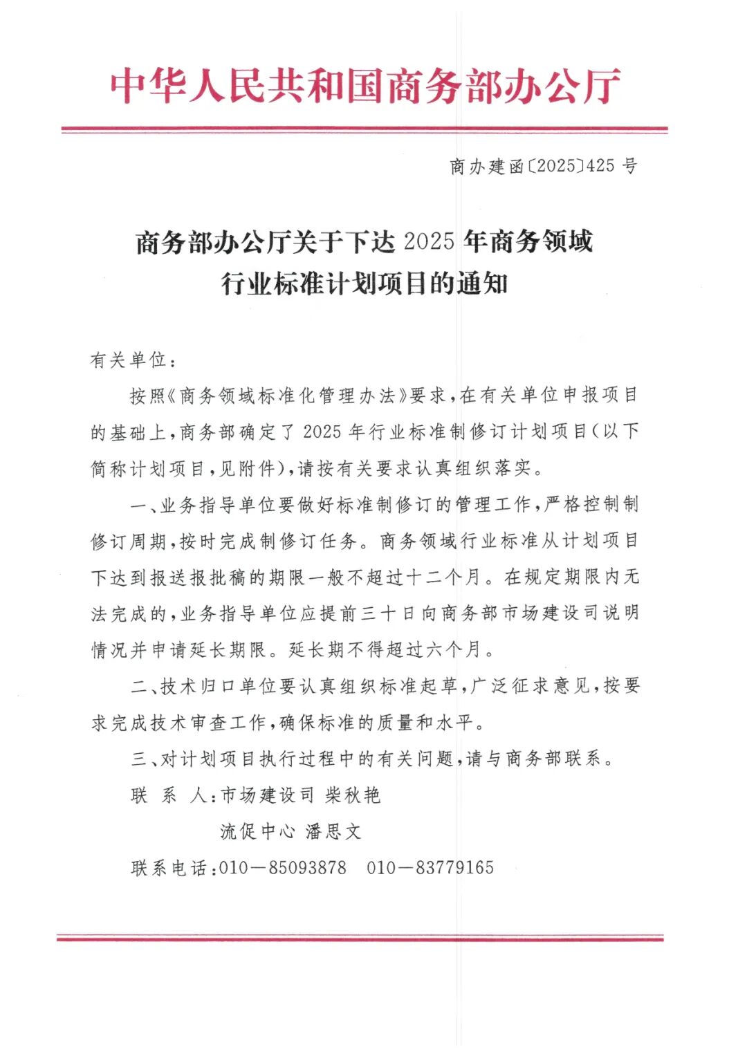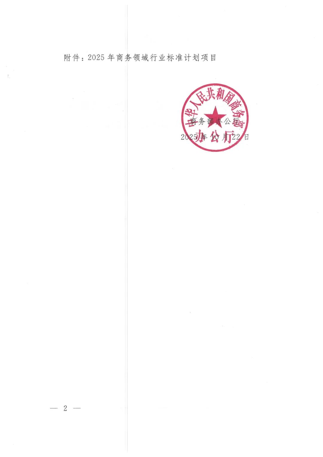 附:《商务部办公厅关于下达2025年商务领域行业标准计划项目的通知》