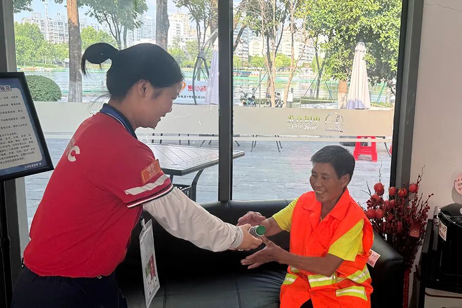 菱角湖加油站持续践行“情系户外劳动者,暖心服务显担当”的责任理念,设置了“爱心驿站”,通过提供“累了能歇脚、渴了能喝水、饭凉能加热、没电能充电、随时可上网、寻药能应急、疑难可咨询”等便民服务,使户外劳动者感受到中国石化加油站的温暖与关怀,通过全方位、多层次地践行央企责任担当,得到社会各界的高度认可。